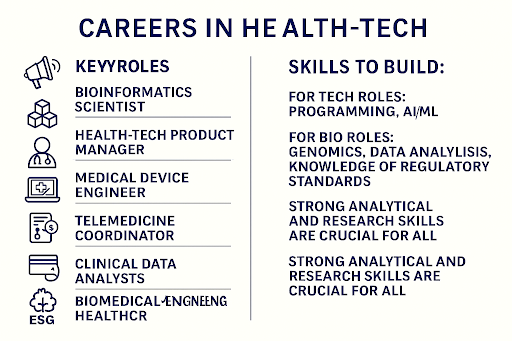 This is a great opportunity for graduates in medicine, human science, and engineering to pursue innovations that improve and transform human lives. In addition, digital health startups like Practo, PharmEasy, HealthifyMe, and others are reshaping access to medical care. AI in diagnostics, telemedicine, and remote care guarantees that health technology continues to be one of the strongest career trends for graduates to consider in 2025. Additionally, India’s healthcare sector is expected to touch $638 billion by 2025, which has created extremely high demand for talent to work in biopharma companies, genetic research organizations, and healthcare technology companies.