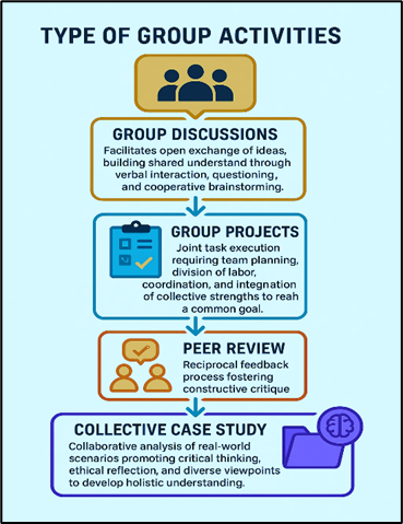 - Observation’s- Observation helps to identify collaborative attitudes, diverse thoughts, conflict resolution, and engagement level. Discussions provide insight into individual accountability within celebrative tasks and support assessment evaluations.